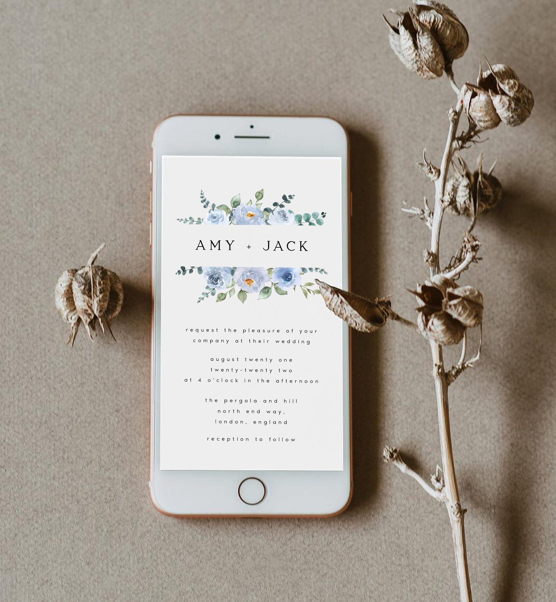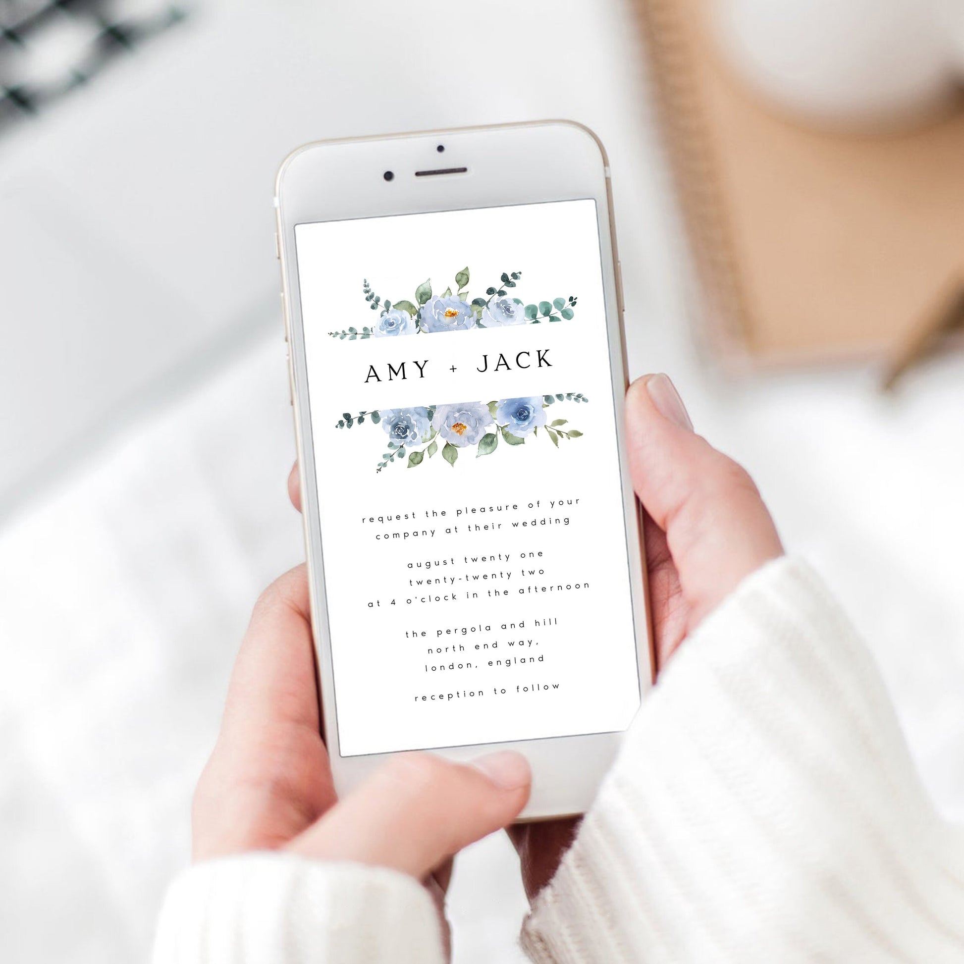 This instant download is perfect for you if you are looking for a pretty and editable Baby Blue Floral Wedding Evite. They are 100% Editable and easy to customize.
