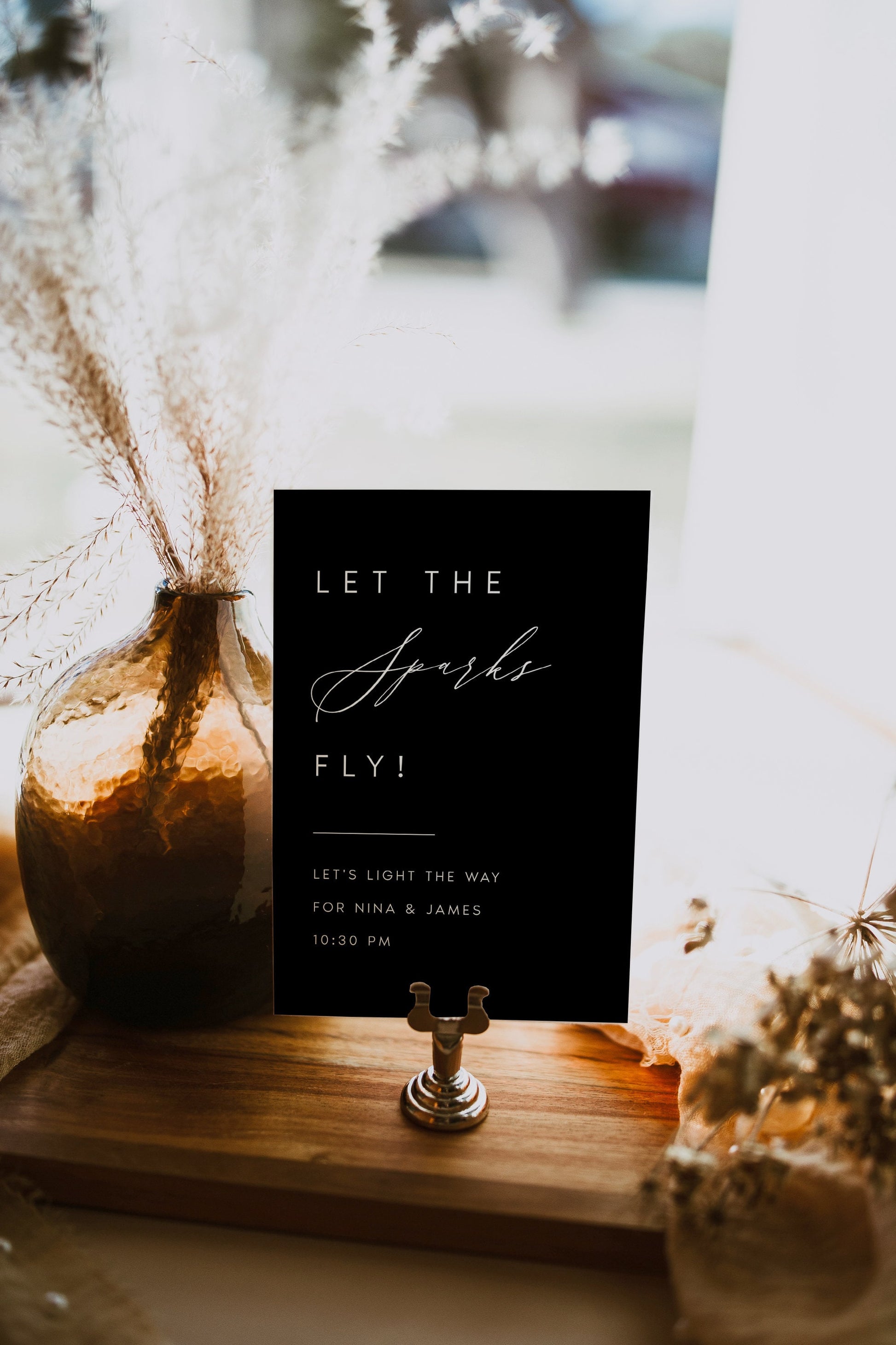 Black Let The Sparks Fly Sign Template, Editable Minimalist Wedding Sign, Modern Custom Sign, DIY Wedding Sign, Digital Download Templett.