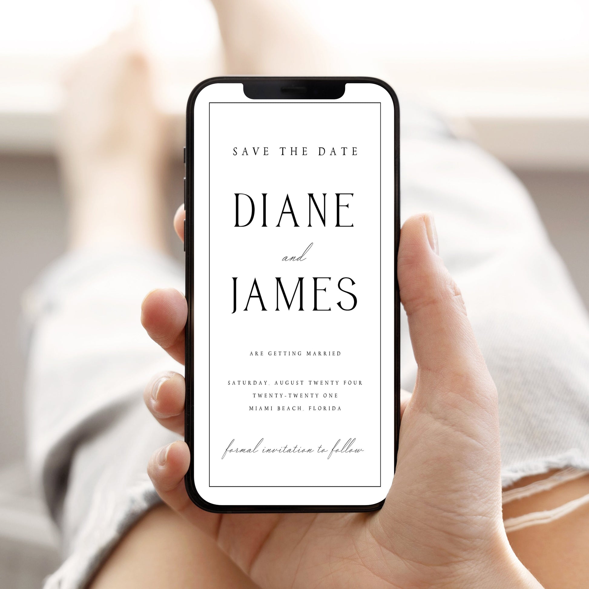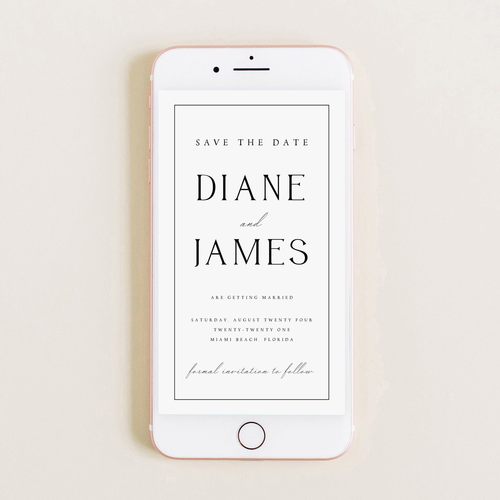 Classic Save the Date E-invite Template, Elegant & Border Digital Invite, Minimal Electronic Save the Date E-vite, Instant Download.