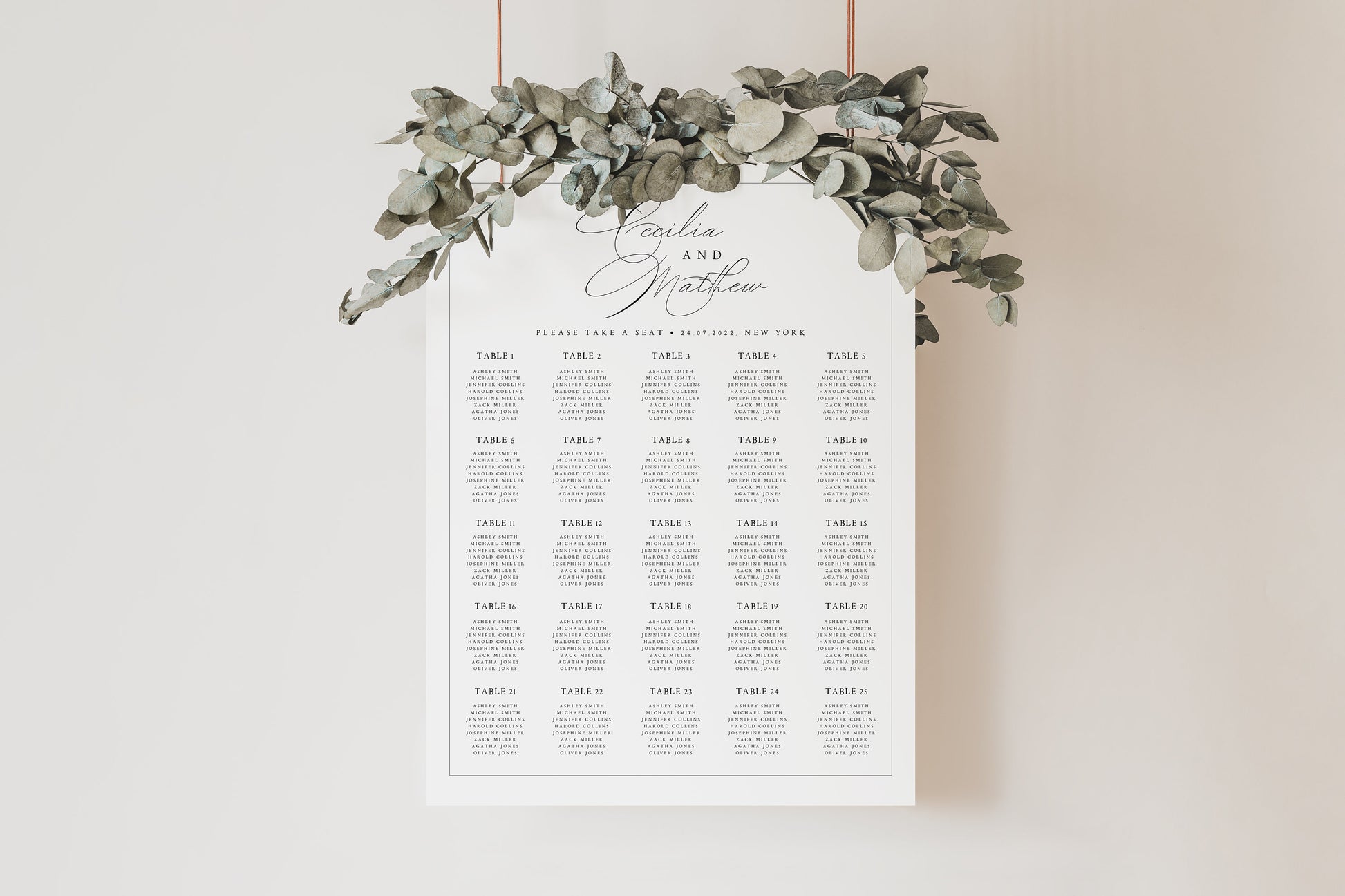 This Classic & Elegant Seating Chart Template is perfect for you if you are looking for a pretty and easy-to-use Minimal Editable Instant Download Seating Plan.