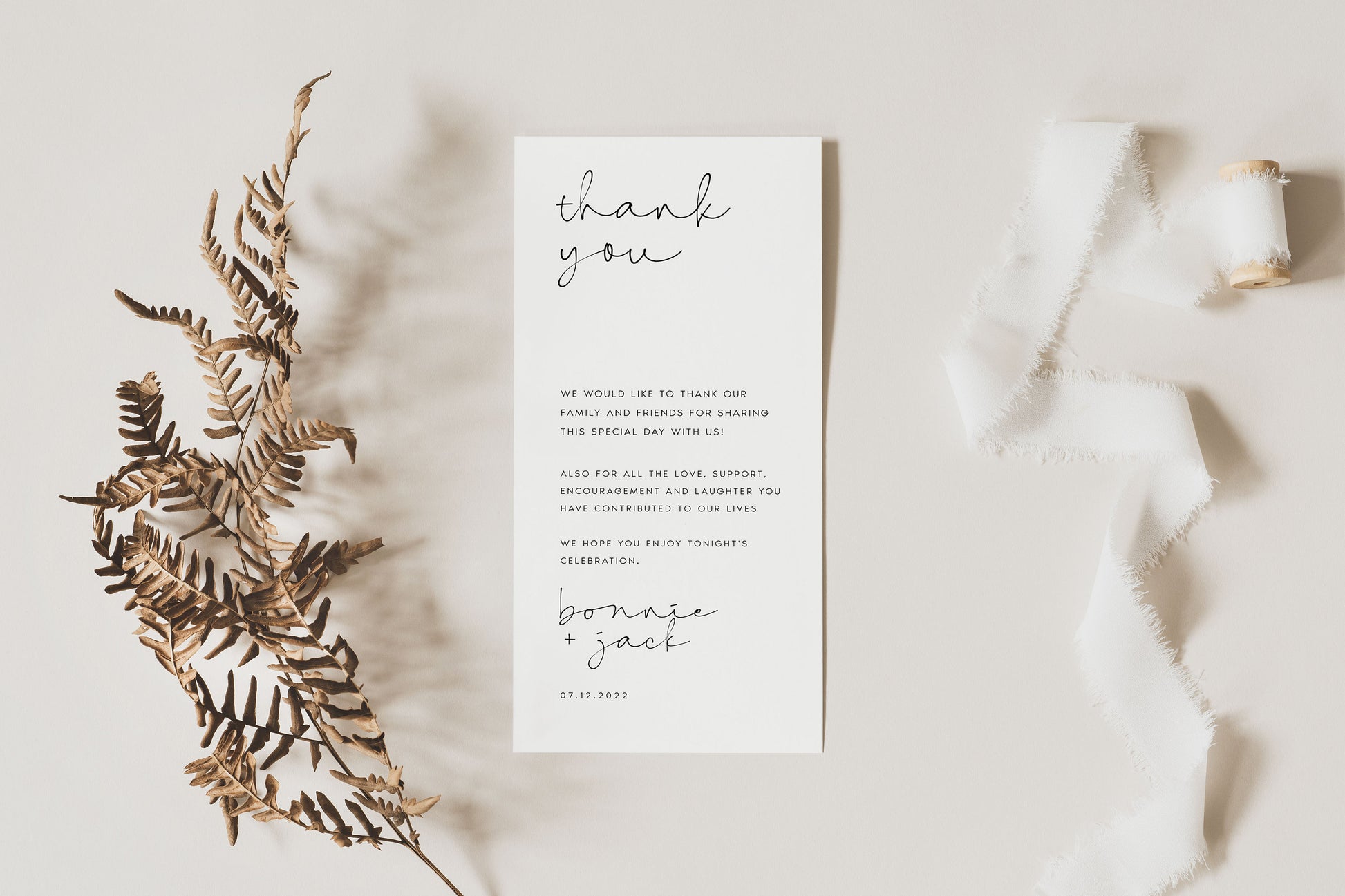 Bonnie Minimalist Wedding Table Thank You Card Template