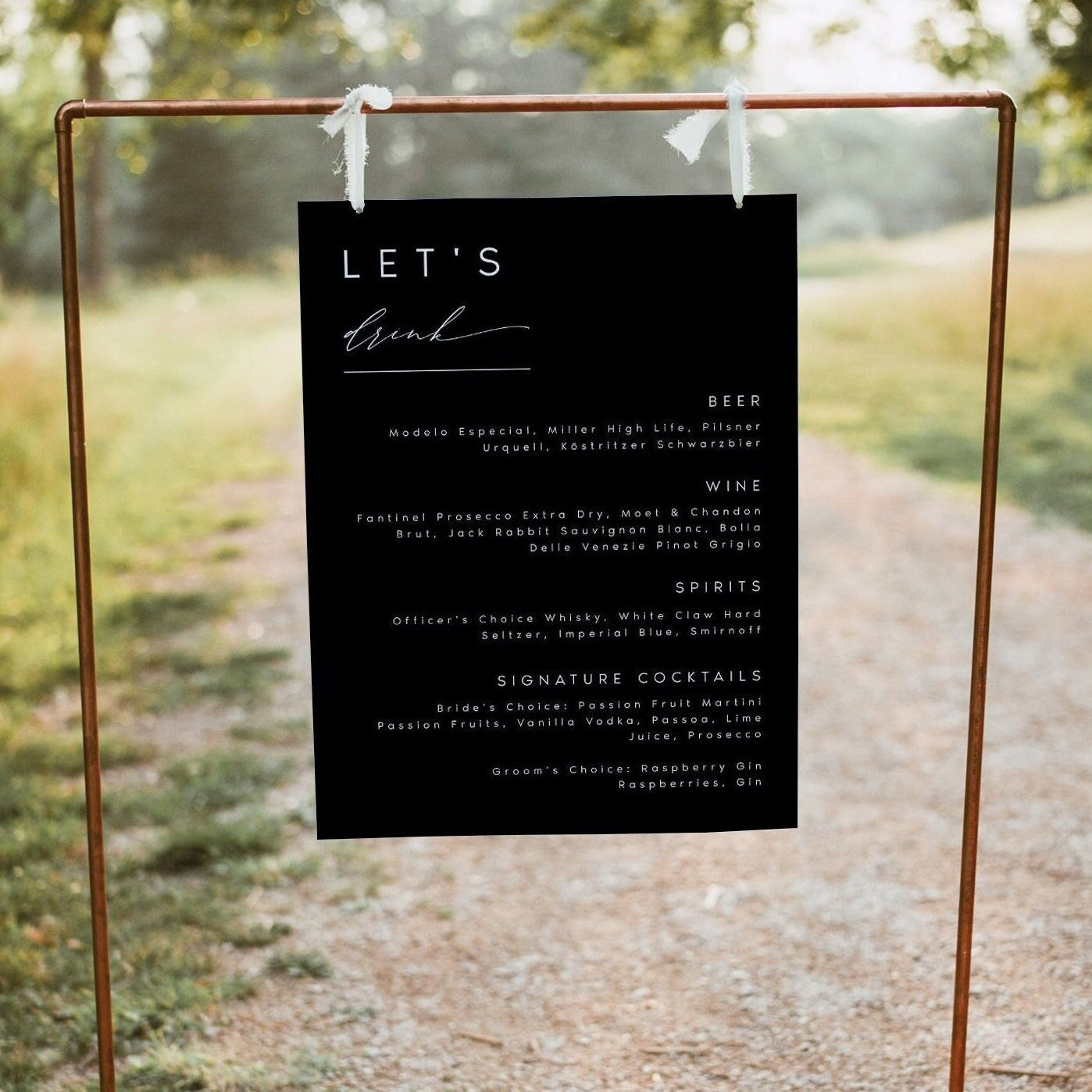 Black Editable Wedding Bar Menu Sign, Minimalist, Modern Menu Sign Template, Modern Wedding Sign, DIY, Instant Download, Templett.