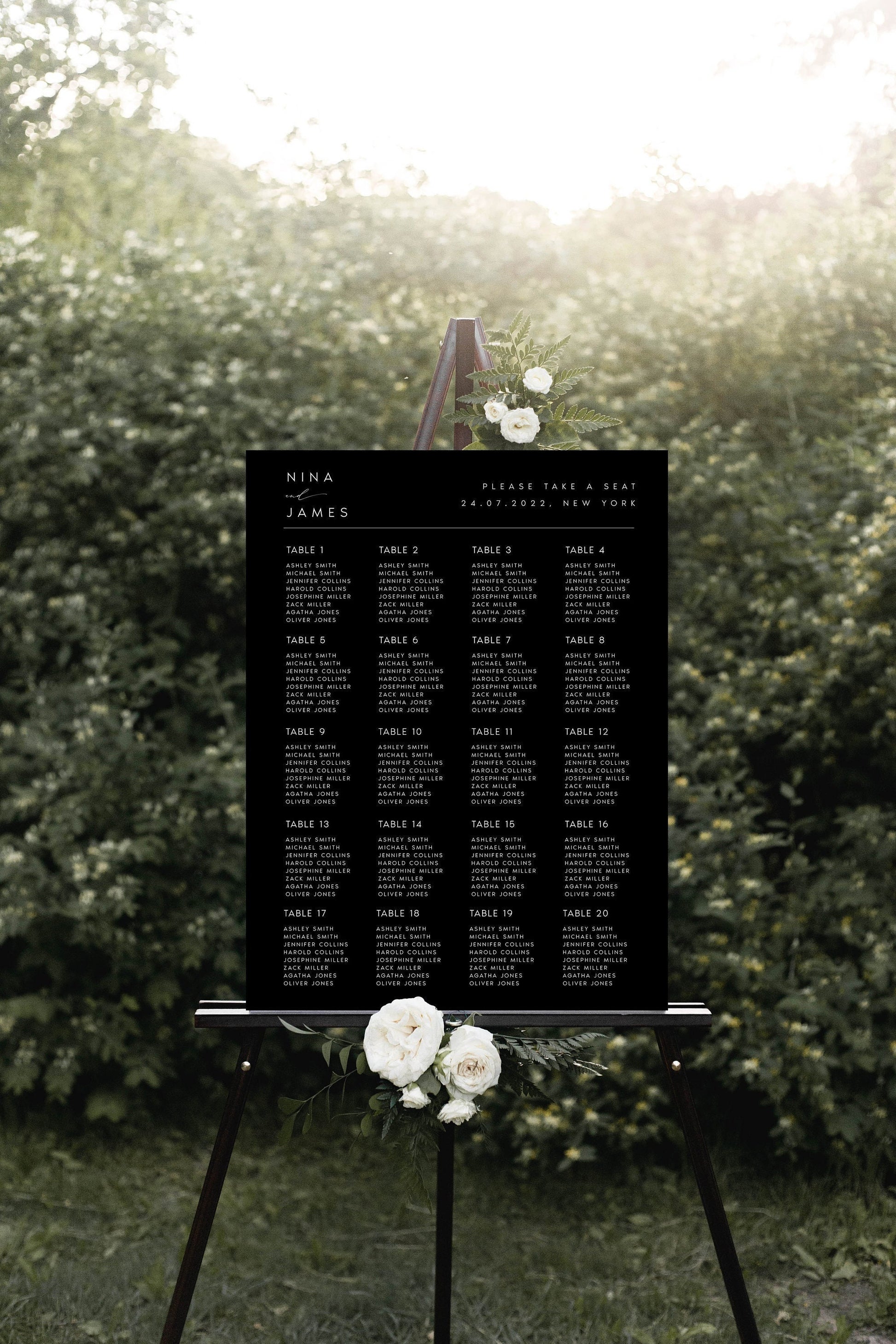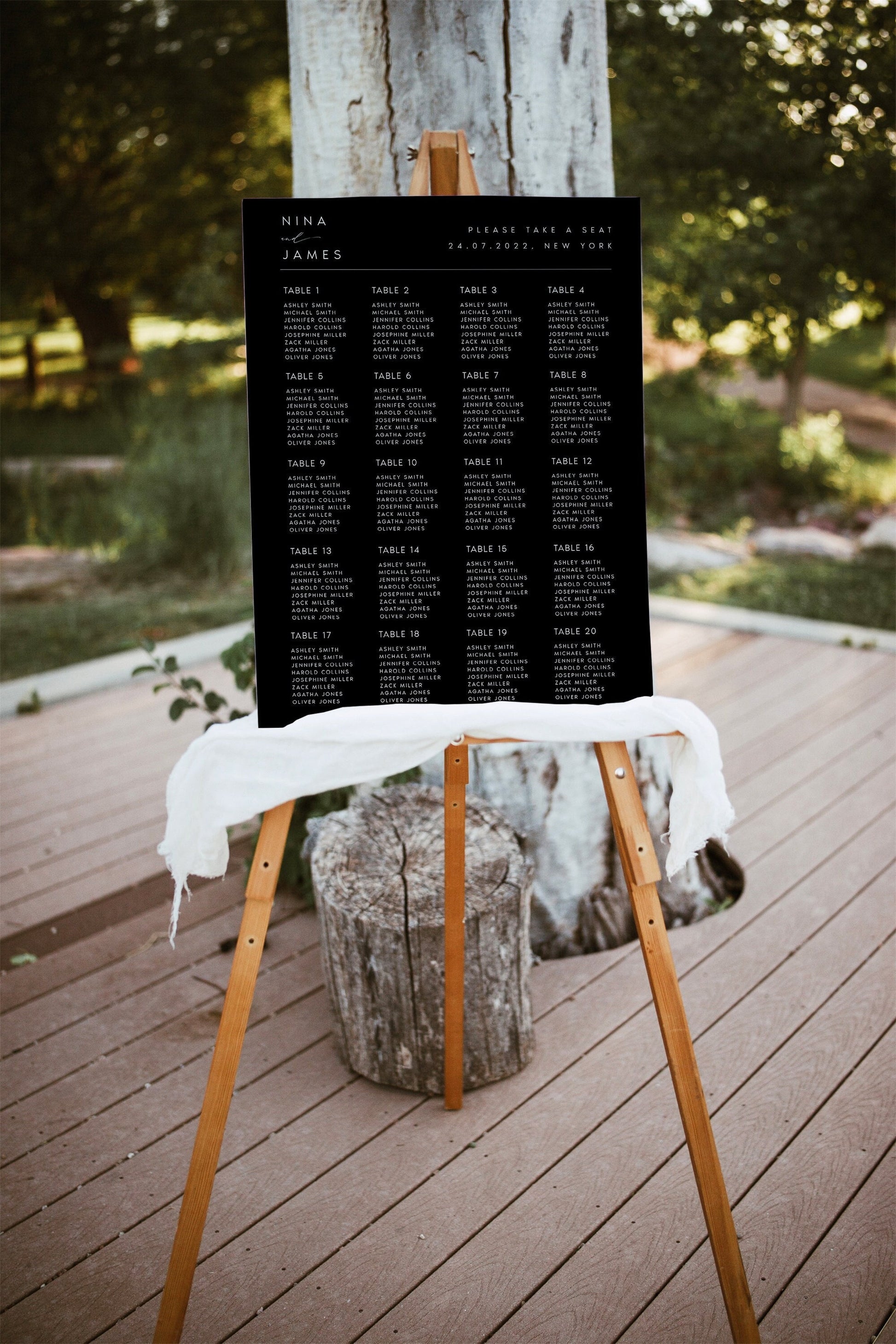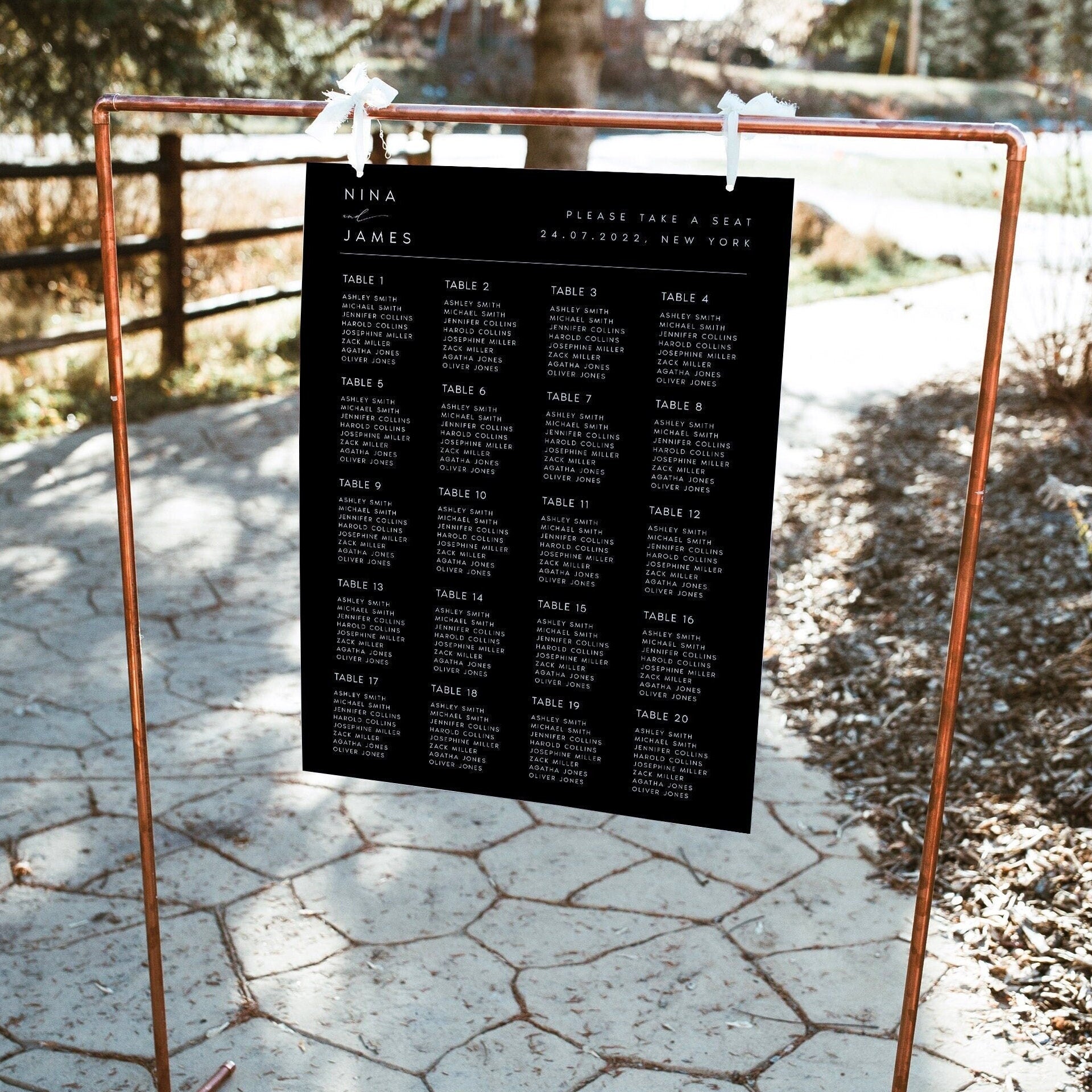 MODERN Seating Chart Template, Minimalist BLACK Editable Instant Download Seating Plan, Digital Download, Wedding Seating Chart.