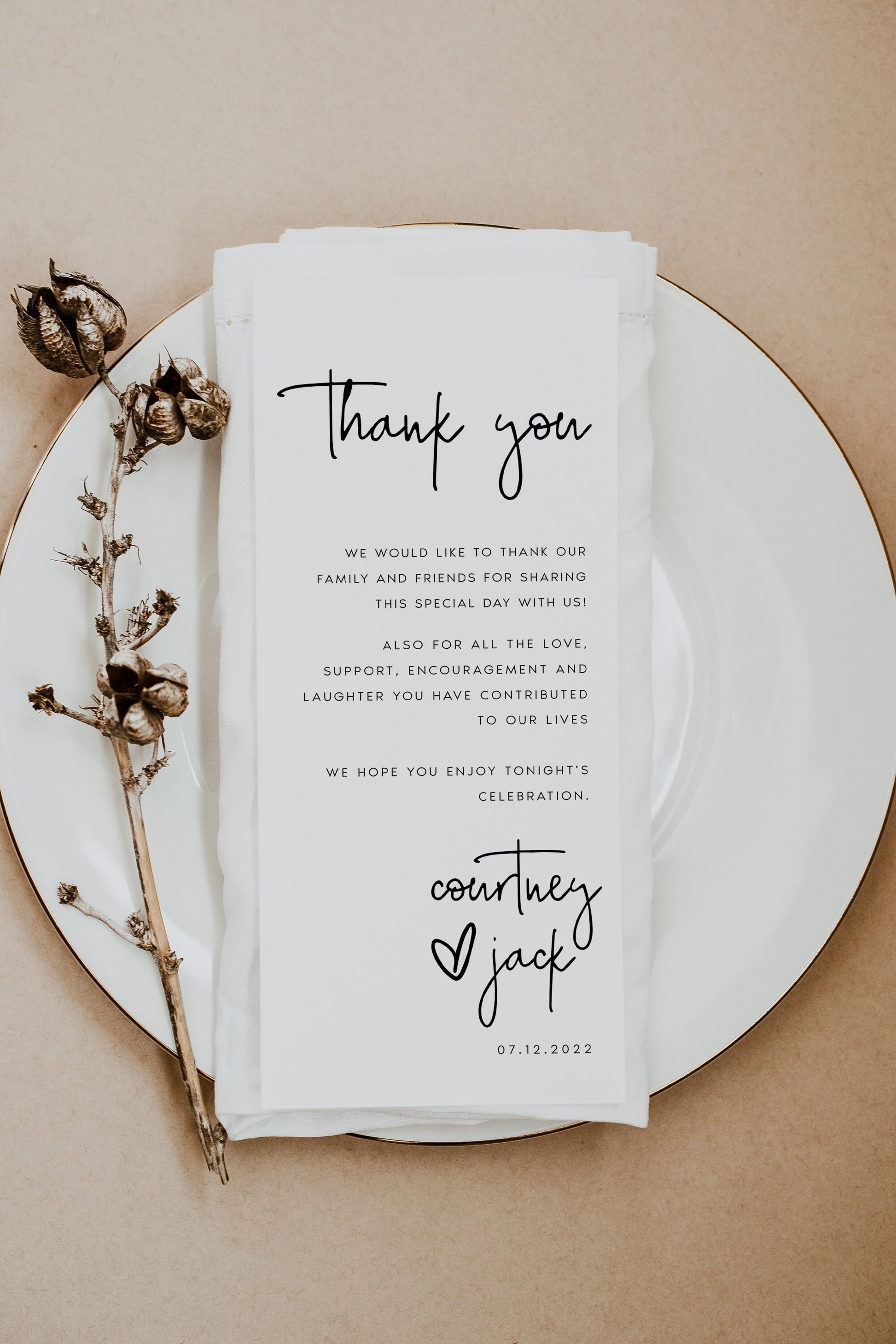 Modern Wedding Table Thank You Card Template, Minimal Printable Thank You Cards, Calligraphy, Script, Instant Download, Templett.