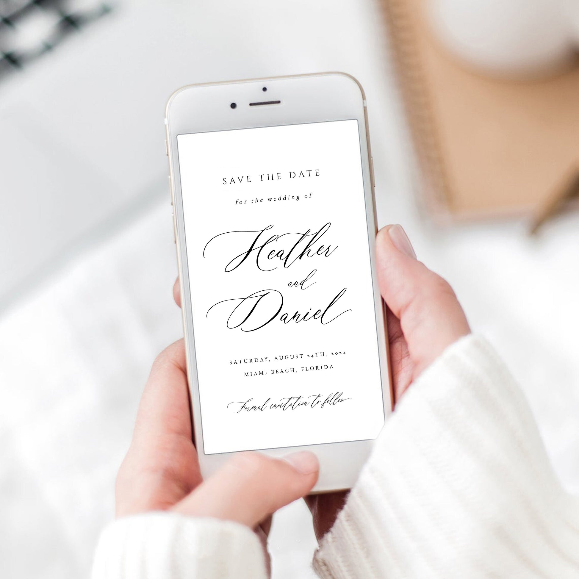 Save the Date Electronic Invitation Template, Elegant Save the Date, Text Invite, Instant Download Save the Date, Calligraphy Save the Date, Online Save the Date, Save the Date Evite.