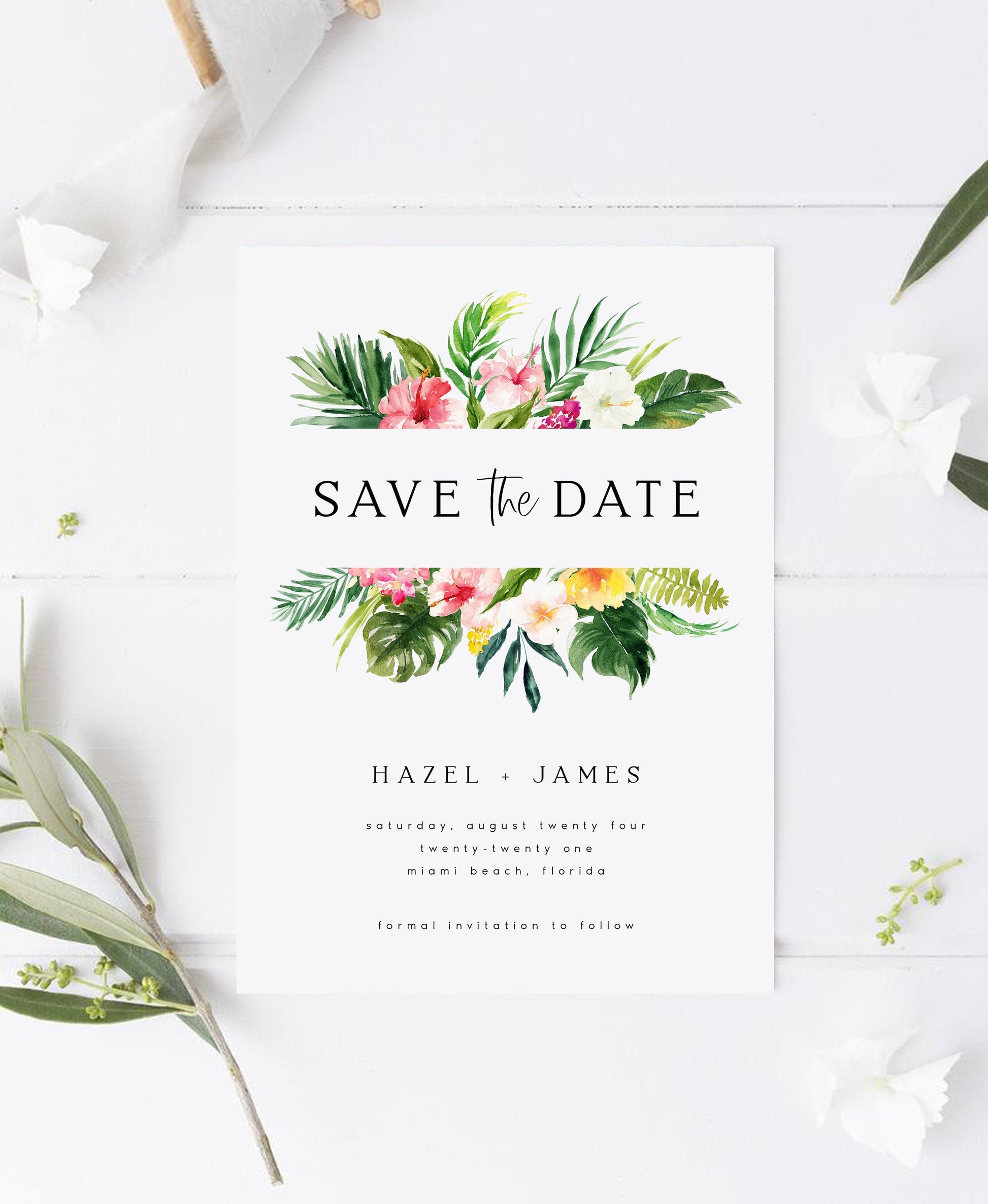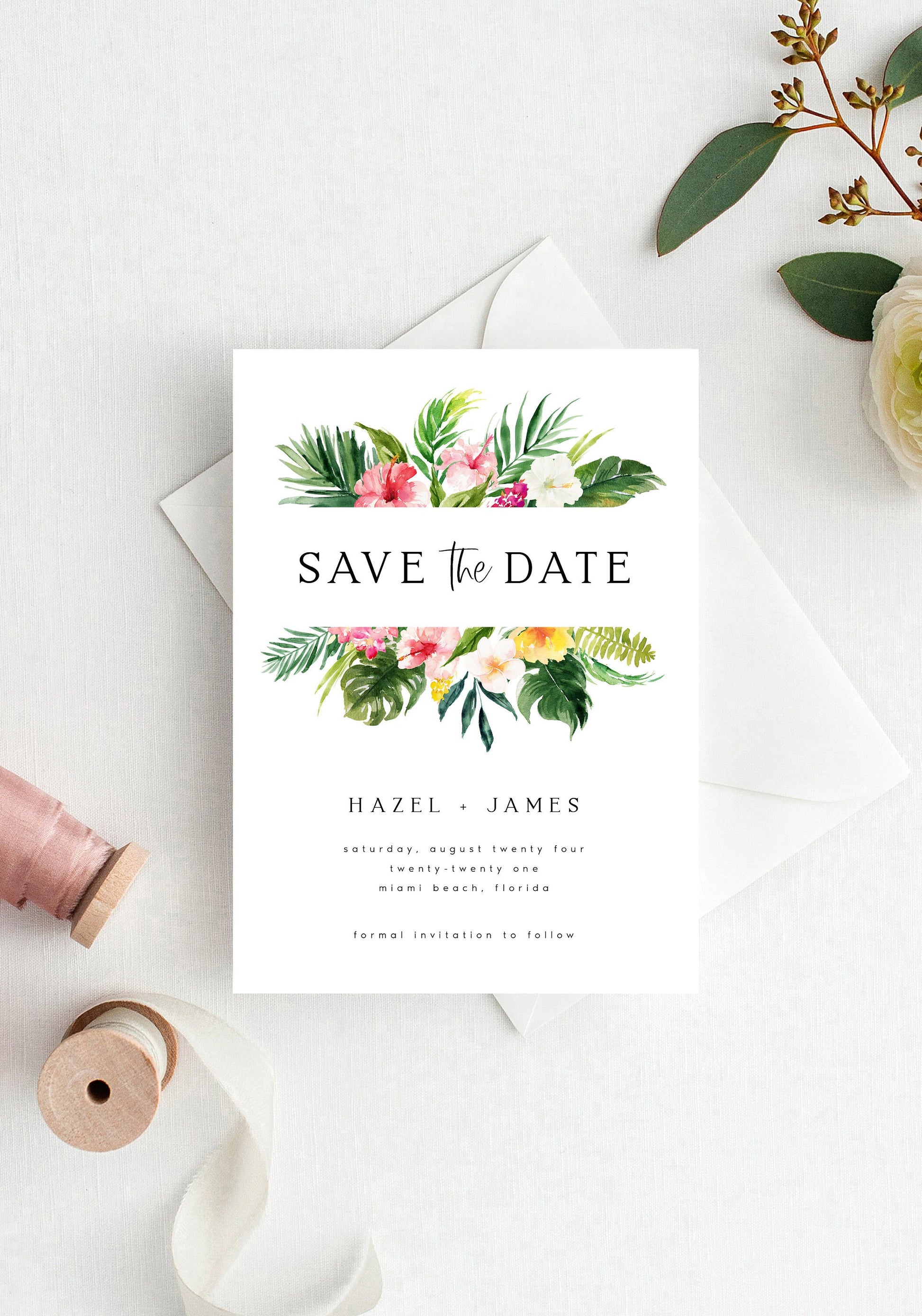 This Tropical Greenery Save the Date Template is perfect for you if you are looking for pretty and easy-to-use Printable Save the Date Invites. Digital download save the date cards are great to save on your wedding budget and easy to edit with INSTANT DOWNLOAD.
